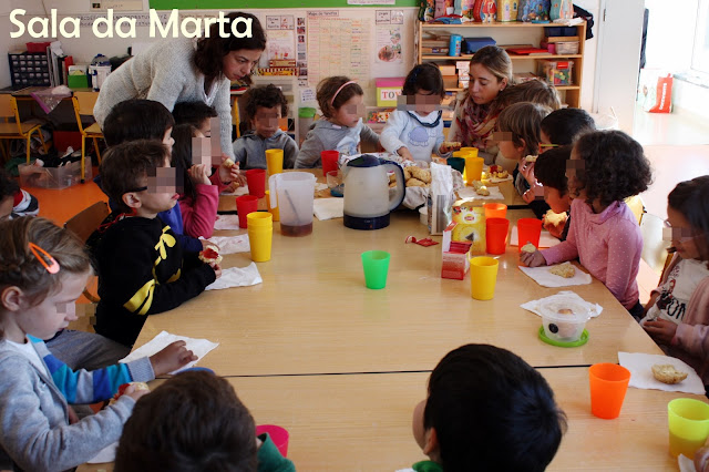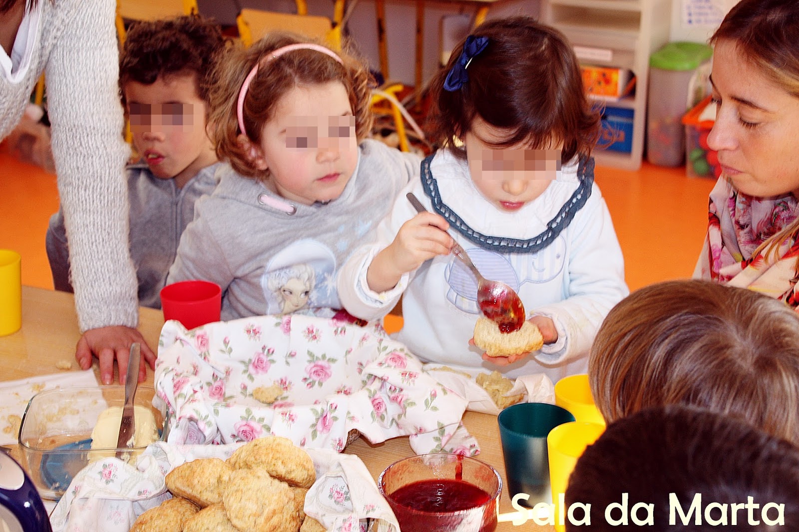 Terminámos o projeto de Londres da melhor forma que poderíamos terminar: a Mariana, mãe da Carminho, sugeriu terminar este projeto com um "Five o'clock tea". Bem, na nossa sala teve de ser um bocadinho mais cedo... mas soube-nos tão bem!!! À hora marcada, com uma pontualidade britânica, a Mariana chegou com duas grandes cestas de scones. Juntámos dois maravilhosos chás e tivemos o lanche mais "british" do ano.