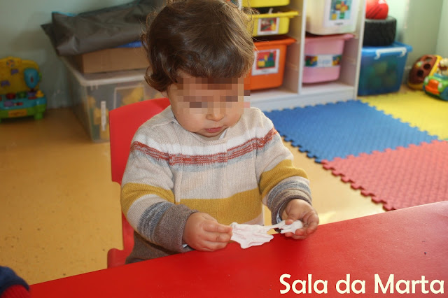 A forma como as coisas surgem dentro da sala é sempre tão diferente e tão interessante. Há uns tempos três meninas da Sala da Susana vieram à nossa sala mostrar um raminho de oliveira. Num pequeno frasco também traziam azeite e na mão algumas azeitonas. Tinha sido uma delas a trazer aquela partilha de casa. Curiosos que ficámos quisemos cheirar aquele líquido e ainda mexer nas folhas e bolinhas pretas que as acompanhavam. Foi uma partilha muito interessante e que suscitou alguma curiosidade.