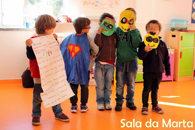 Voltámos a encontrar-nos passado algum tempo, de regresso à área polivalente, fomos colocando o que faltava na nossa maqueta. Casas, a nossa escola, um escorrega, os semáforos e muitos carros. Percebemos que faltavam pessoas nas passadeiras, mas as mochilas e bolsos das crianças da nossa sala estão cheios de surpresas... logo ganhámos uma Minnie, um Thor, alguns bonecos da lego e outros da playmobil, um Super Mário e ainda uma Barbie. Cada um ganhou um lugar num passeio ou numa passadeira.