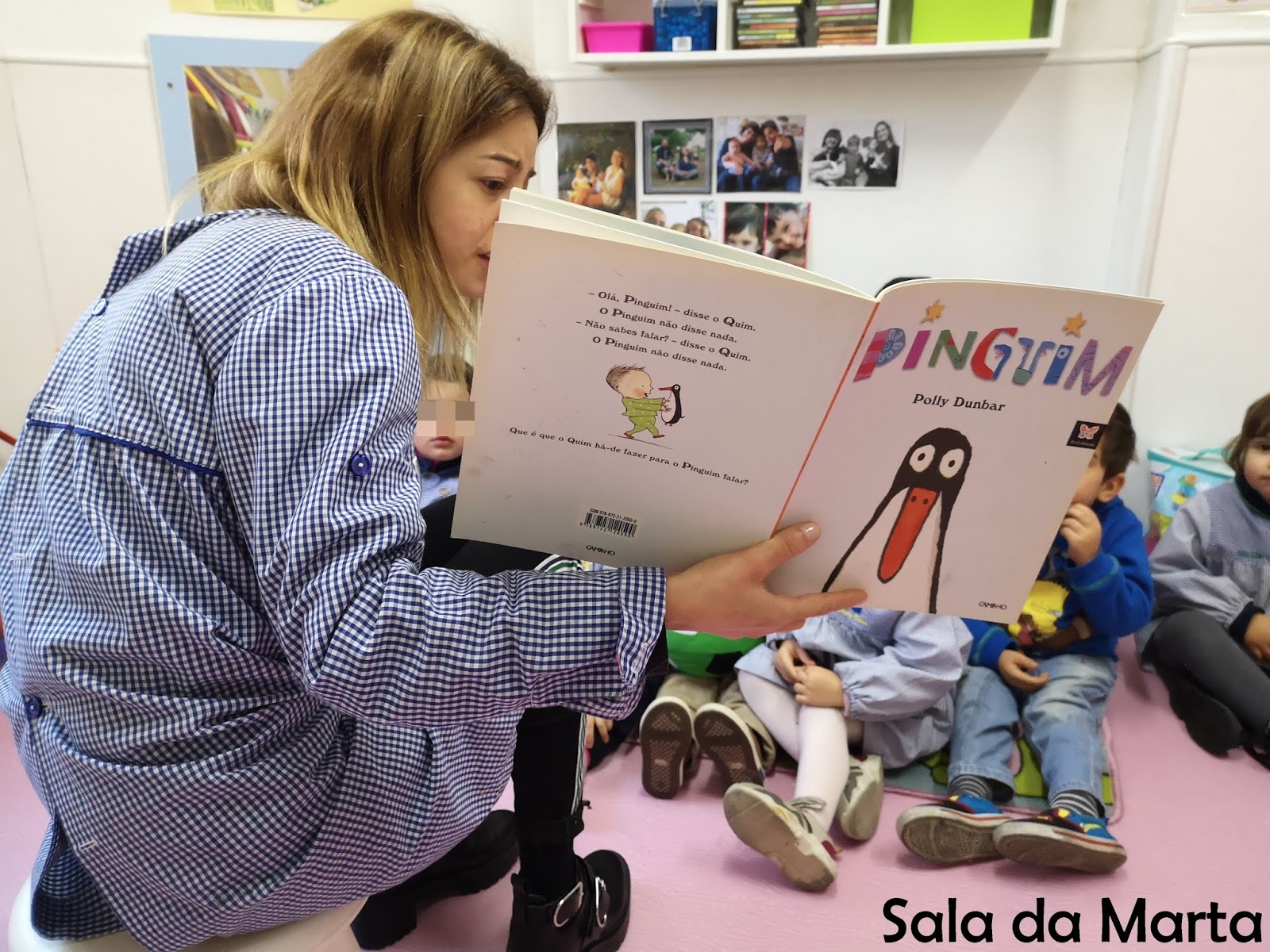 Levámos a pergunta ao grupo e logo outras questões surgiram: "Será que os pinguins comem cenouras?" "Os pinguins podem viver nas nossas casas?" Foi a partir destas questões que iniciámos a nossa pesquisa. Fomos buscar alguns livros à biblioteca e ao folhearmos fomos descobrindo novas informações: